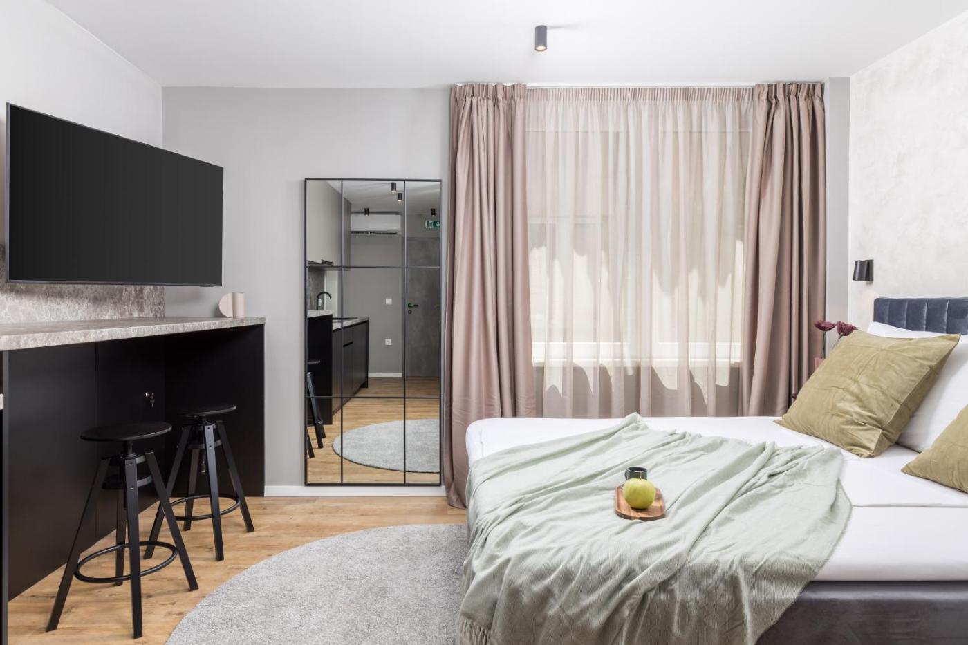 King Studio. The studio provides air conditioning, soundproof walls, as well as a private bathroom featuring a shower and a hairdryer. Guests can make meals in the kitchen that is equipped with a stovetop, a refrigerator, a dishwasher and kitchenware. The studio has a flat-screen TV, a wardrobe, an electric kettle, as well as heating. The unit offers 1 bed. ;