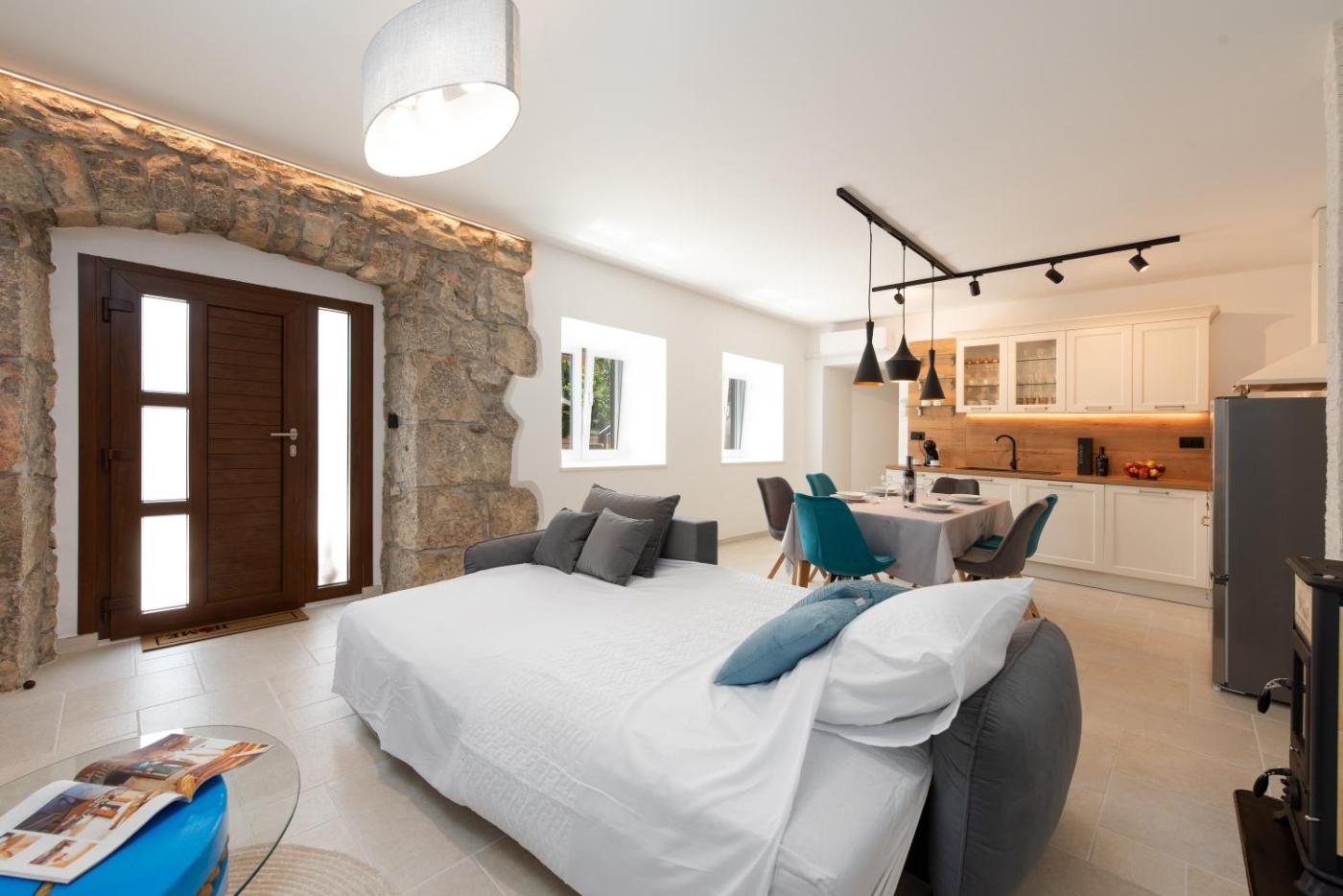One-Bedroom Apartment. This apartment features a fireplace. Boasting a private entrance, this air-conditioned apartment features 1 living room, 1 separate bedroom and 1 bathroom with a walk-in shower and a hairdryer. Guests will find a stovetop, a refrigerator, a dishwasher and kitchenware in the well-equipped kitchen. The apartment also comes with a barbecue. The spacious apartment features a flat-screen TV with streaming services, a washing machine, soundproof walls, a coffee machine as well as sea views. The unit has 2 beds.