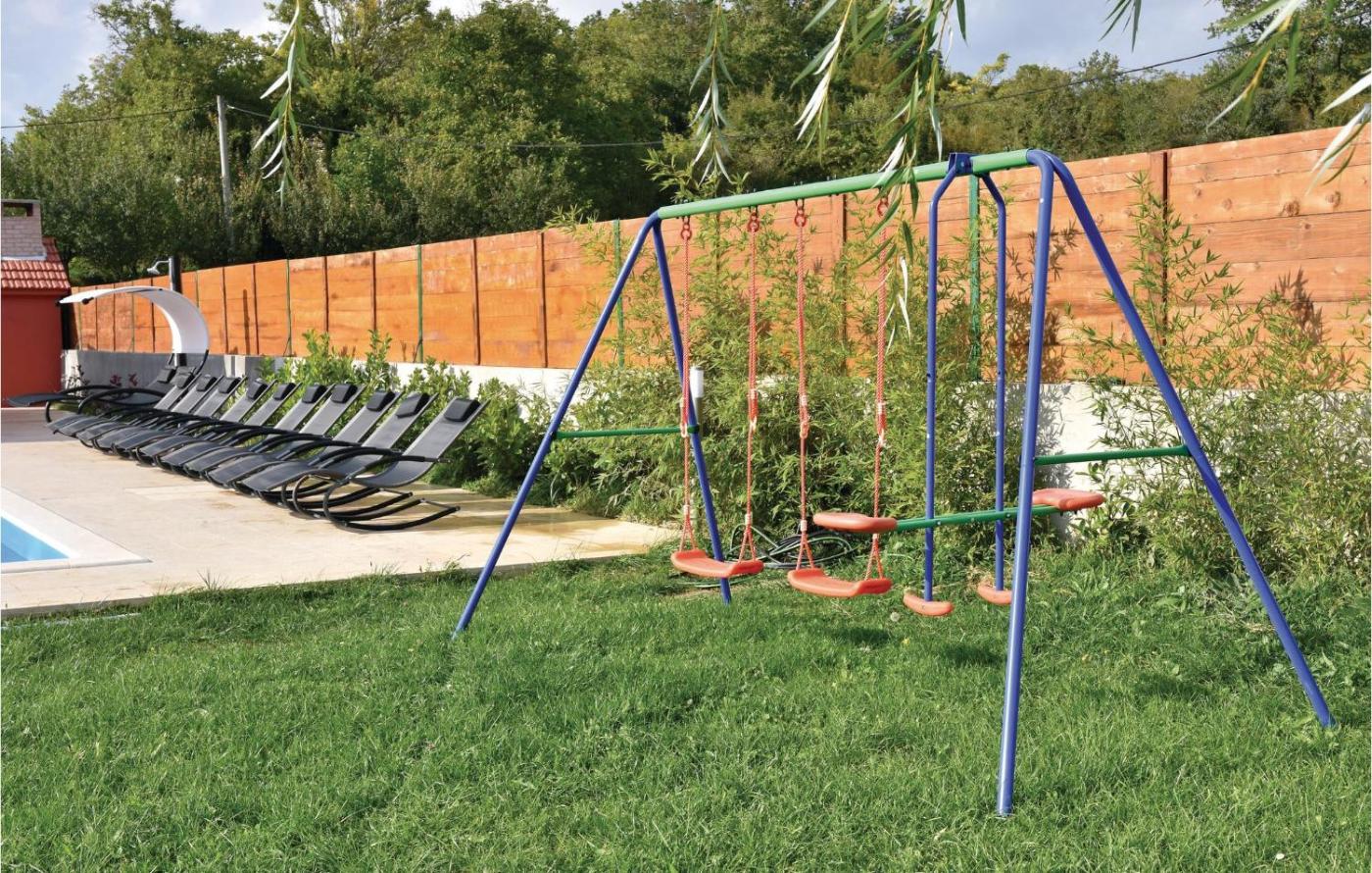 In addition to an outdoor pool, the holiday home also provides outdoor play equipment.