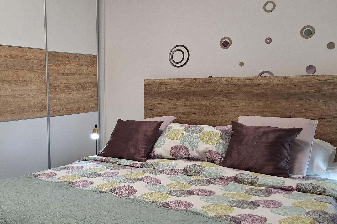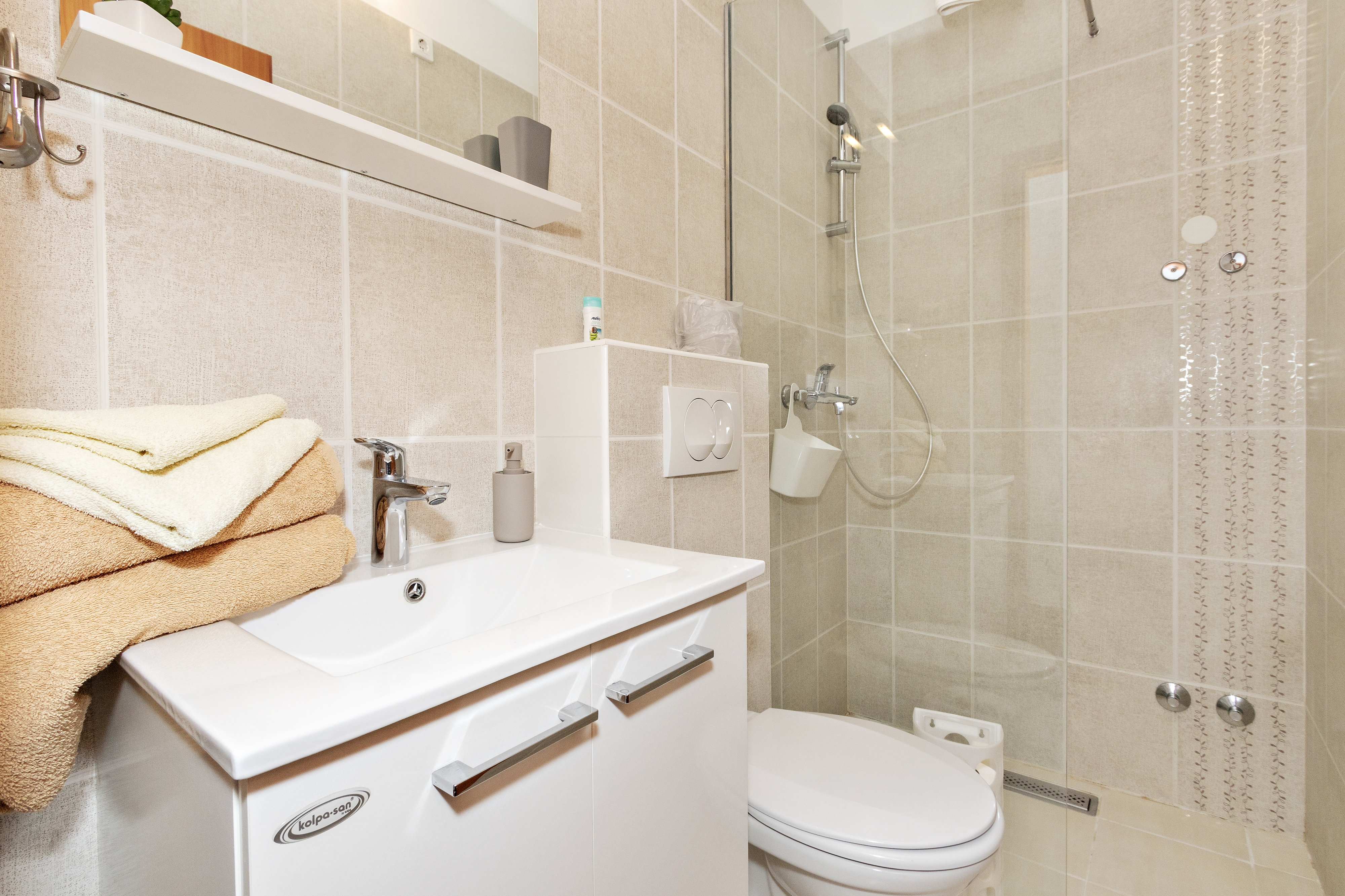 Apartment can accommodate 6 guests. Beds are situated in 2 sleeping rooms, but also in the living room, within 56m2. Guests can use a private terrace to enjoy the warm summer evenings. Food can be prepared using barbecue which is shared with other guests too. Shared pool is on disposal during stay. Other guests or hosts pass through the terrace of the booked accommodation unit. INCLUDED IN THE PRICE: tourist tax, final cleaning, air-conditioning, pool, parking, internet, baby cot, iron, ironing board, hairdryer. The availability of additional services for your chosen dates of stay, as well as their prices (if none are listed) must be checked ahead of time. Any additional services not shown in the price calculation are payable directly to the property owner and only if used by the visitor.