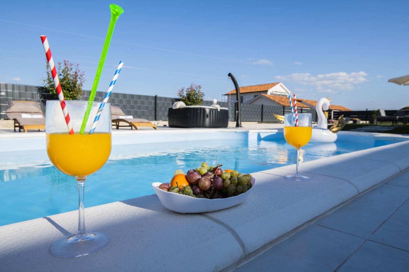 Villa with Private Pool. This luxurious villa has a private pool, a hot tub and a fireplace. Boasting a private entrance, this air-conditioned villa comes with 1 living room, 3 separate bedrooms and 2 bathrooms with a walk-in shower and a bidet. Guests will find a stovetop, a refrigerator, a dishwasher and kitchenware in the well-equipped kitchen. The villa also includes a barbecue. Featuring a terrace with pool views, this villa also features a washing machine and a flat-screen TV with cable channels. The unit has 4 beds.