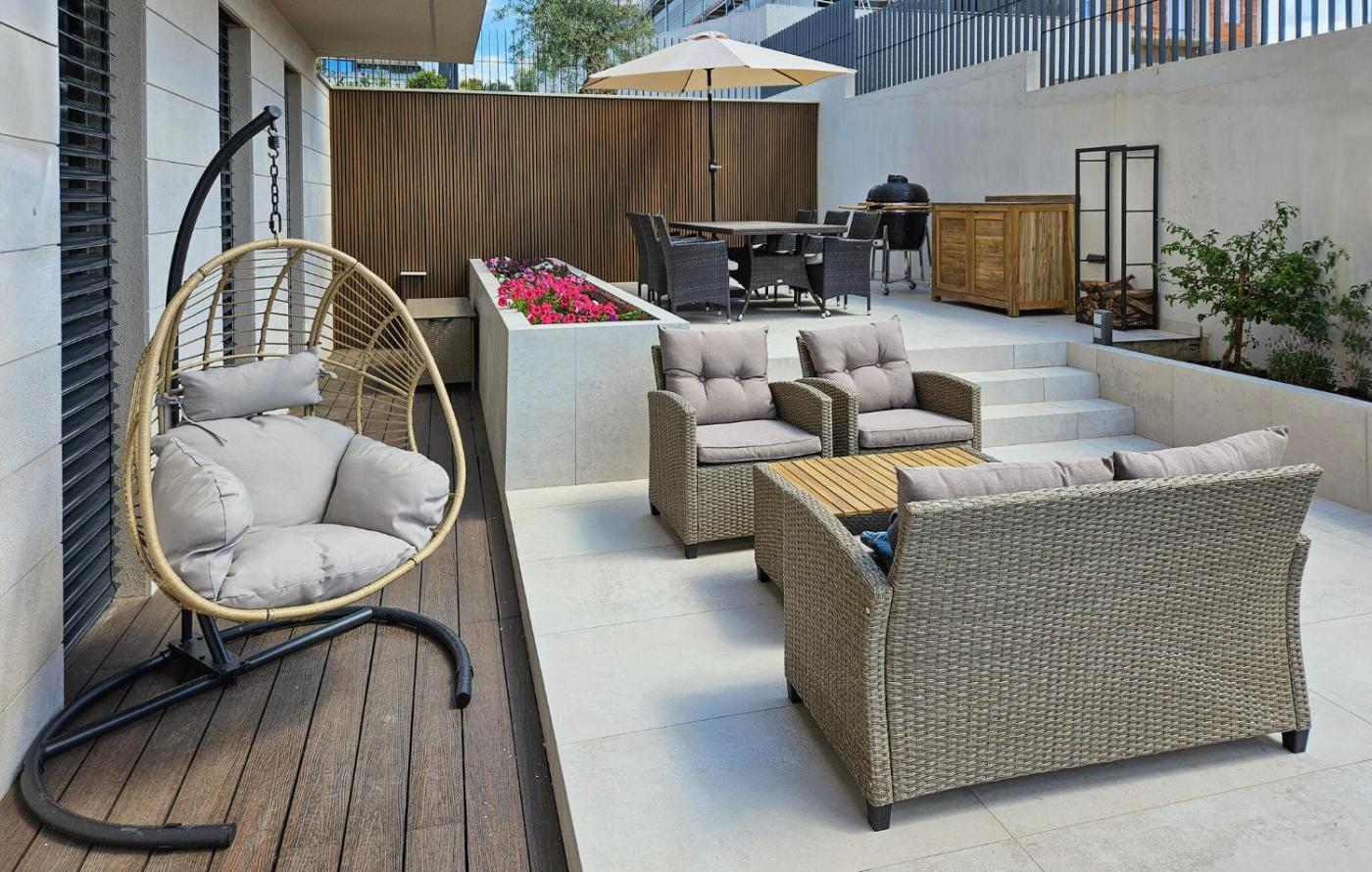 The 1-bedroom apartment is equipped with a living room with a TV with streaming services, a fully equipped kitchen with a dishwasher and an oven, and 2 bathrooms with a hair dryer. For added privacy, the accommodation features a private entrance.
