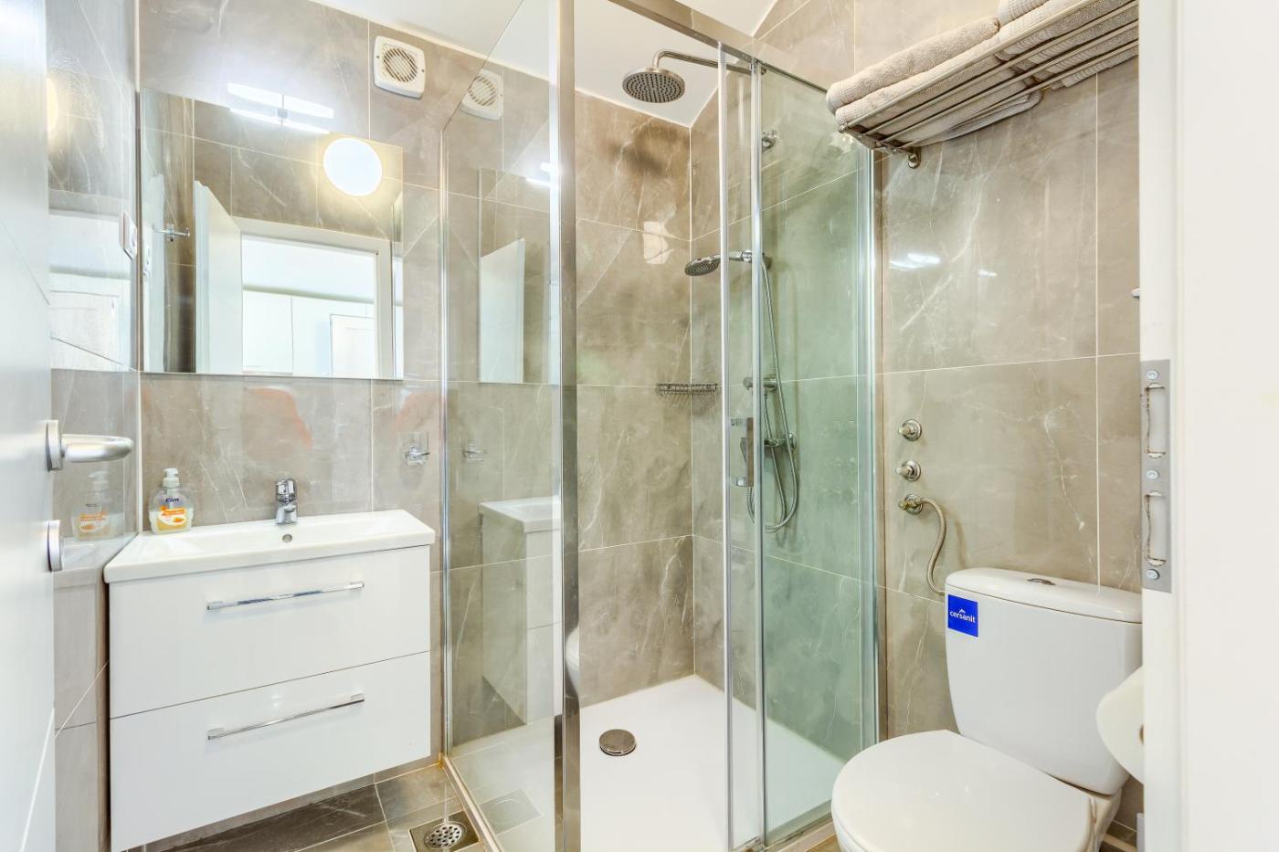 One-Bedroom Apartment. Boasting a private entrance, this air-conditioned apartment features 1 living room, 1 separate bedroom and 1 bathroom with a walk-in shower and a hairdryer. The well-fitted kitchen has a stovetop, a refrigerator, a dishwasher and kitchenware. Featuring a terrace with sea views, this apartment also features soundproof walls and a flat-screen TV with satellite channels. The unit has 3 beds.