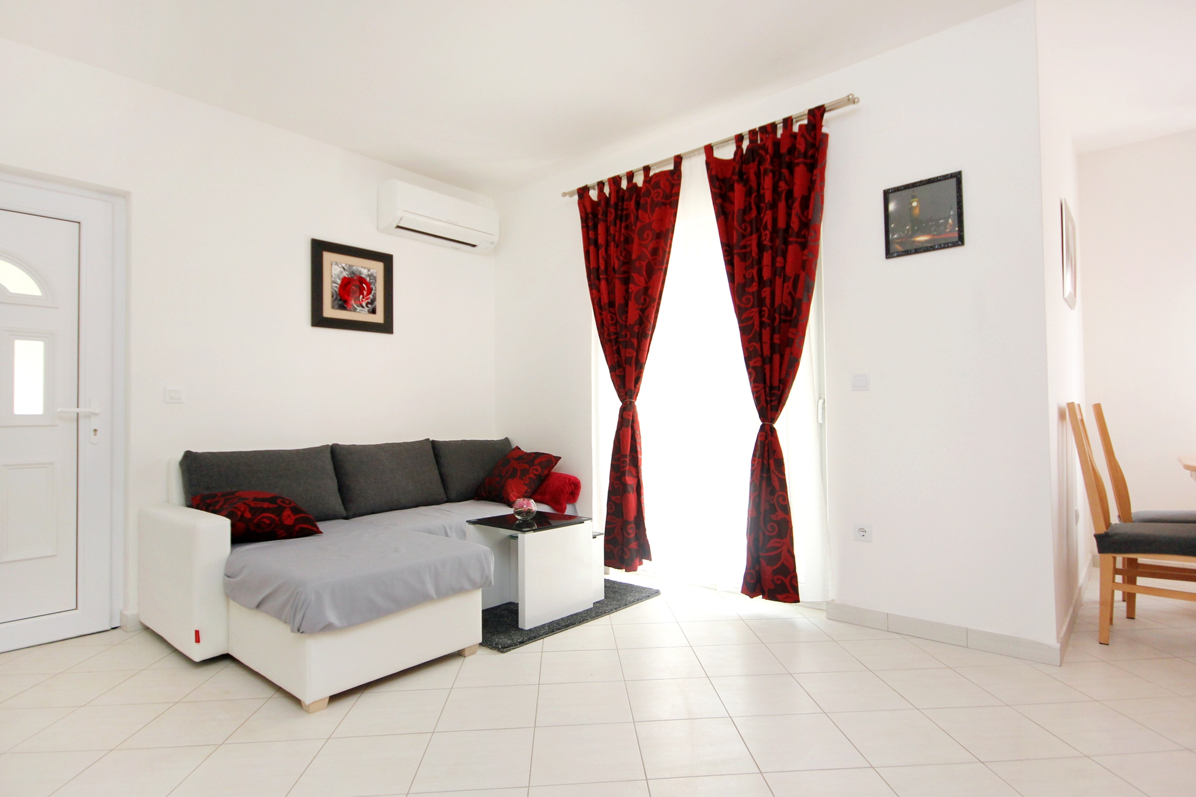 Apartment can accommodate 5 guests. Beds are situated in 2 sleeping rooms, but also in the living room, within 44m2. Guests can use a private terrace to enjoy the warm summer evenings. Food can be prepared using barbecue which is shared with other guests too. INCLUDED IN THE PRICE: tourist tax, final cleaning, air-conditioning, parking, internet. OBLIGATORY ADDITIONAL COSTS: short stay fee (surcharge depending on a number of booked nights: 30% - 1, 20% - 2, 10% - 3). The availability of additional services for your chosen dates of stay, as well as their prices (if none are listed) must be checked ahead of time. Any additional services not shown in the price calculation are payable directly to the property owner and only if used by the visitor.