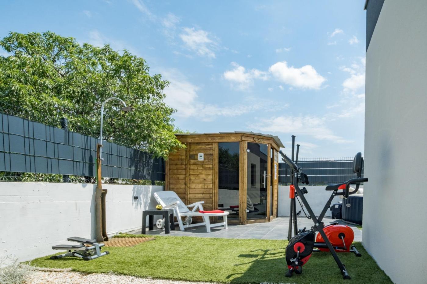 Three-Bedroom Villa. This luxurious villa offers a private pool, a hot tub and a sauna. Boasting a private entrance, this air-conditioned villa features 1 living room, 3 separate bedrooms and 2 bathrooms with a walk-in shower and a bath. Guests will find a stovetop, a refrigerator, a dishwasher and kitchenware in the well-equipped kitchen. The villa also comes with a barbecue. Featuring a terrace with garden views, this villa also features a washing machine and a flat-screen TV with satellite channels. The unit has 4 beds.
