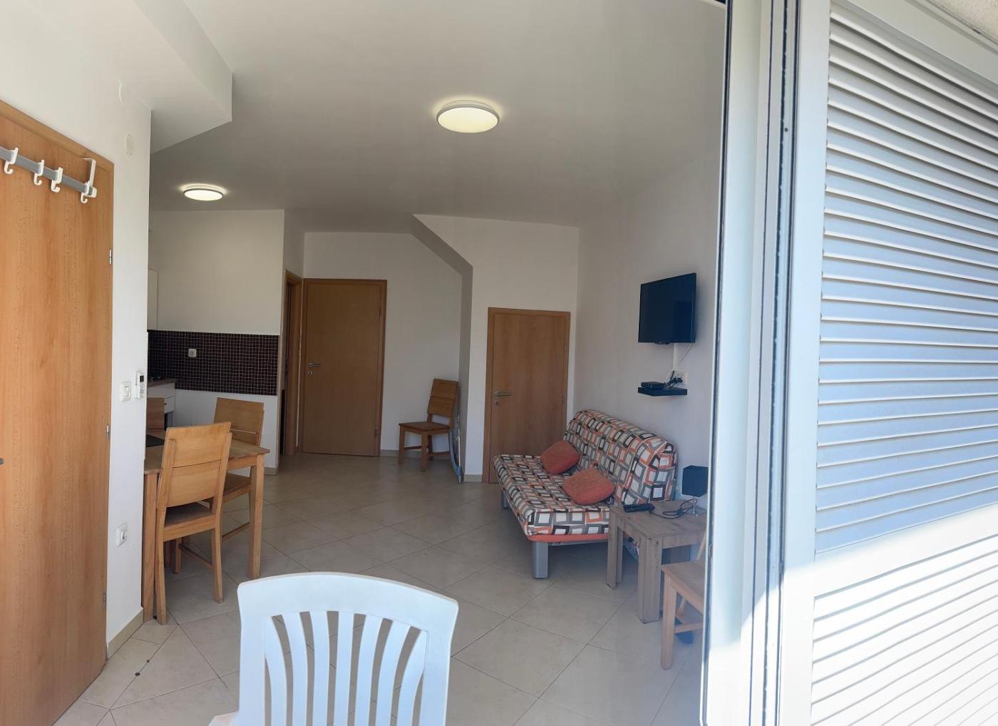 The apartment provides guests with a balcony, sea views, a seating area, satellite flat-screen TV, a fully equipped kitchen with a toaster and a fridge, and a private bathroom with shower and a hair dryer. There is also a stovetop, kitchenware and a kettle. At the apartment complex, every unit comes with bed linen and towels.