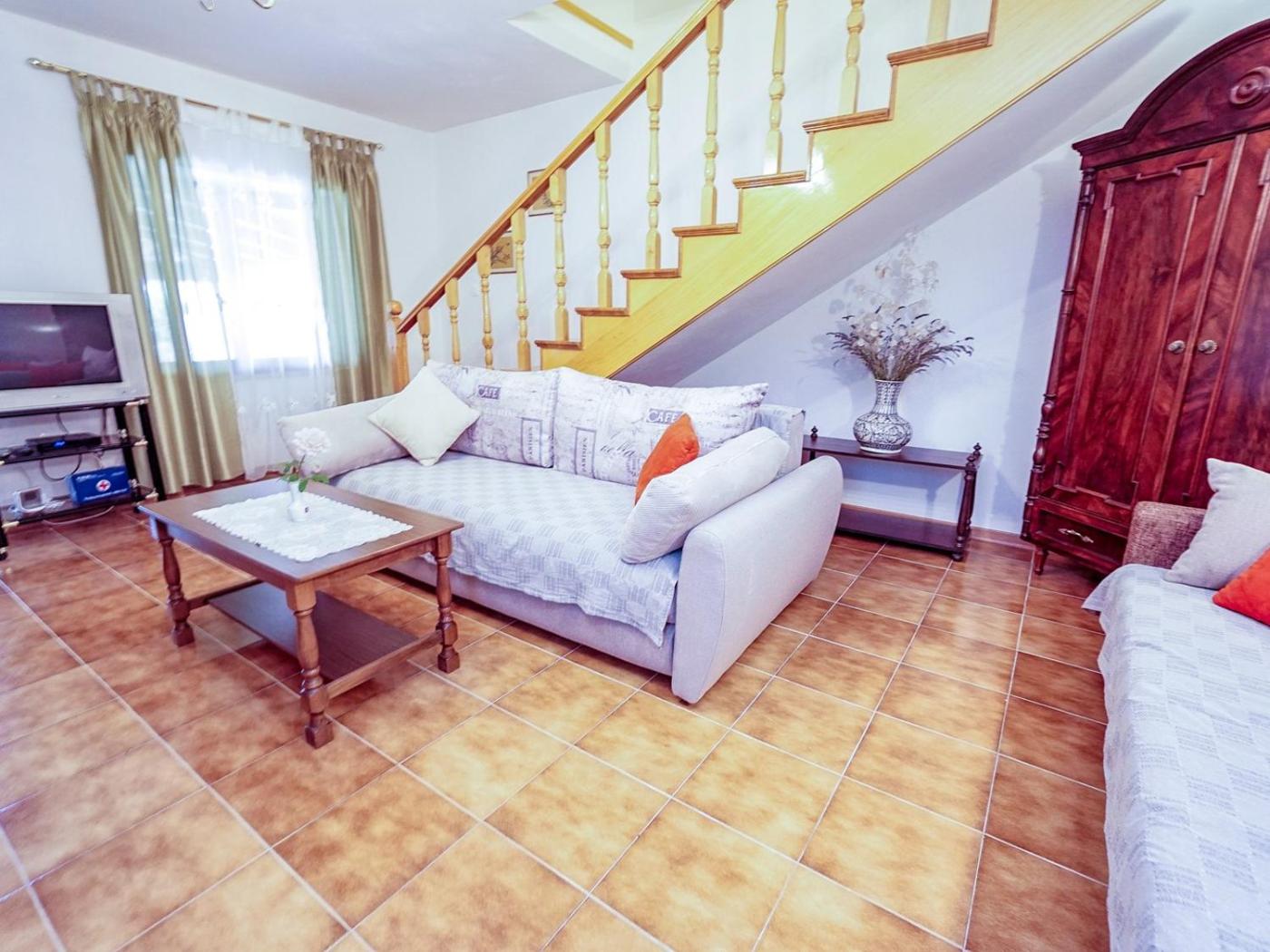 Holiday Home. This spacious holiday home is comprised of 1 living room, 3 separate bedrooms and 3 bathrooms with a bath and a shower. Guests will find a stovetop, a refrigerator, kitchenware and an oven in the fully equipped kitchen. The holiday home also has a barbecue. This air-conditioned holiday home features a dining area, a TV with satellite channels a washing machine and a patio. The unit offers 4 beds.