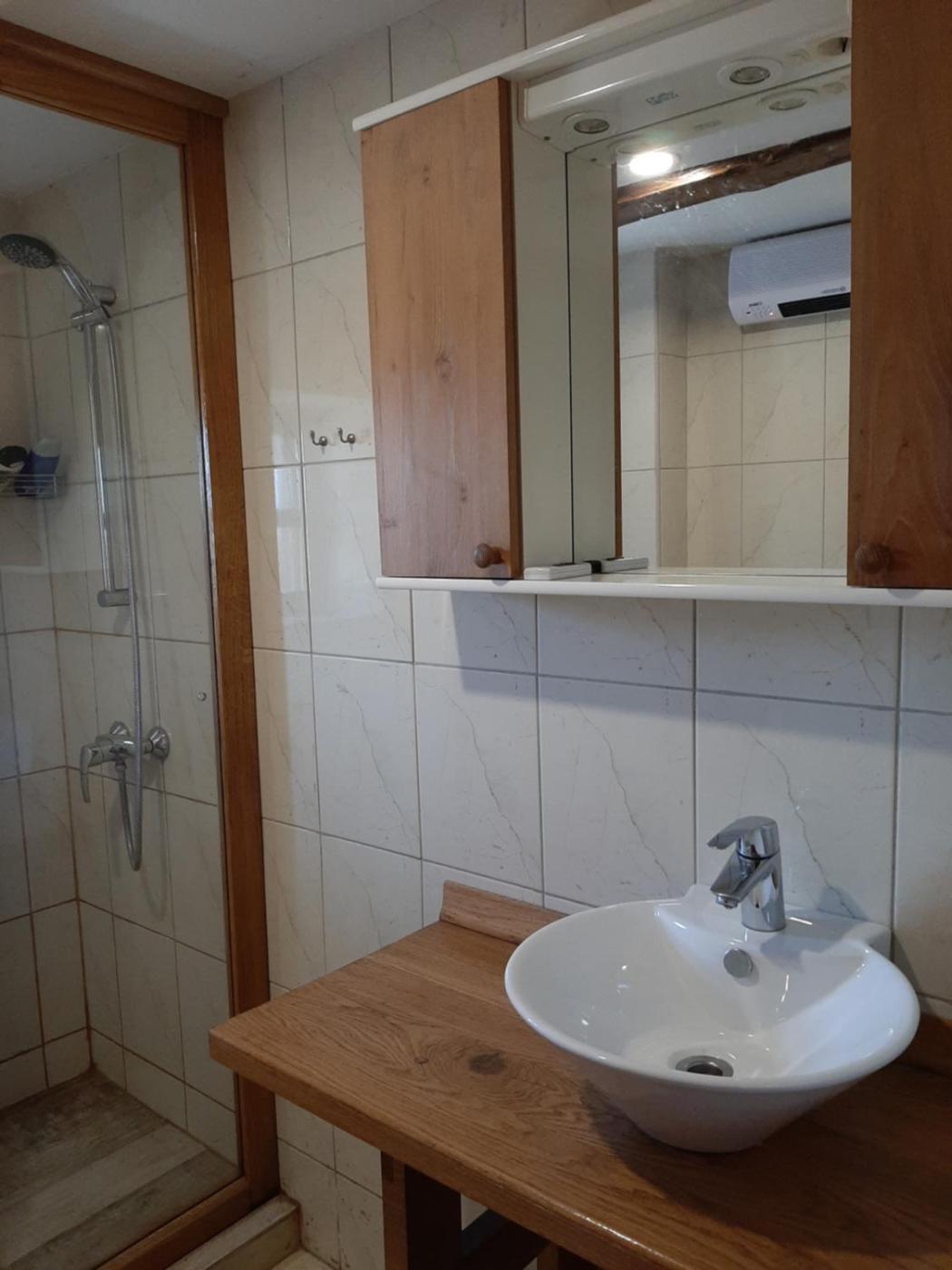 Holiday Home. Guests will have a special experience as the apartment provides a fireplace. This apartment consists of 1 living room, 1 separate bedroom and 1 bathroom with a shower and free toiletries. Guests will find a stovetop, a refrigerator, kitchenware and a microwave in the well-equipped kitchen. The apartment also offers a barbecue. The unit features a private entrance, garden views, a terrace and winechampagne is provided for guests. The unit offers 3 beds. The swiming pool is 370m from the house. The bedroom doesnt have a door.