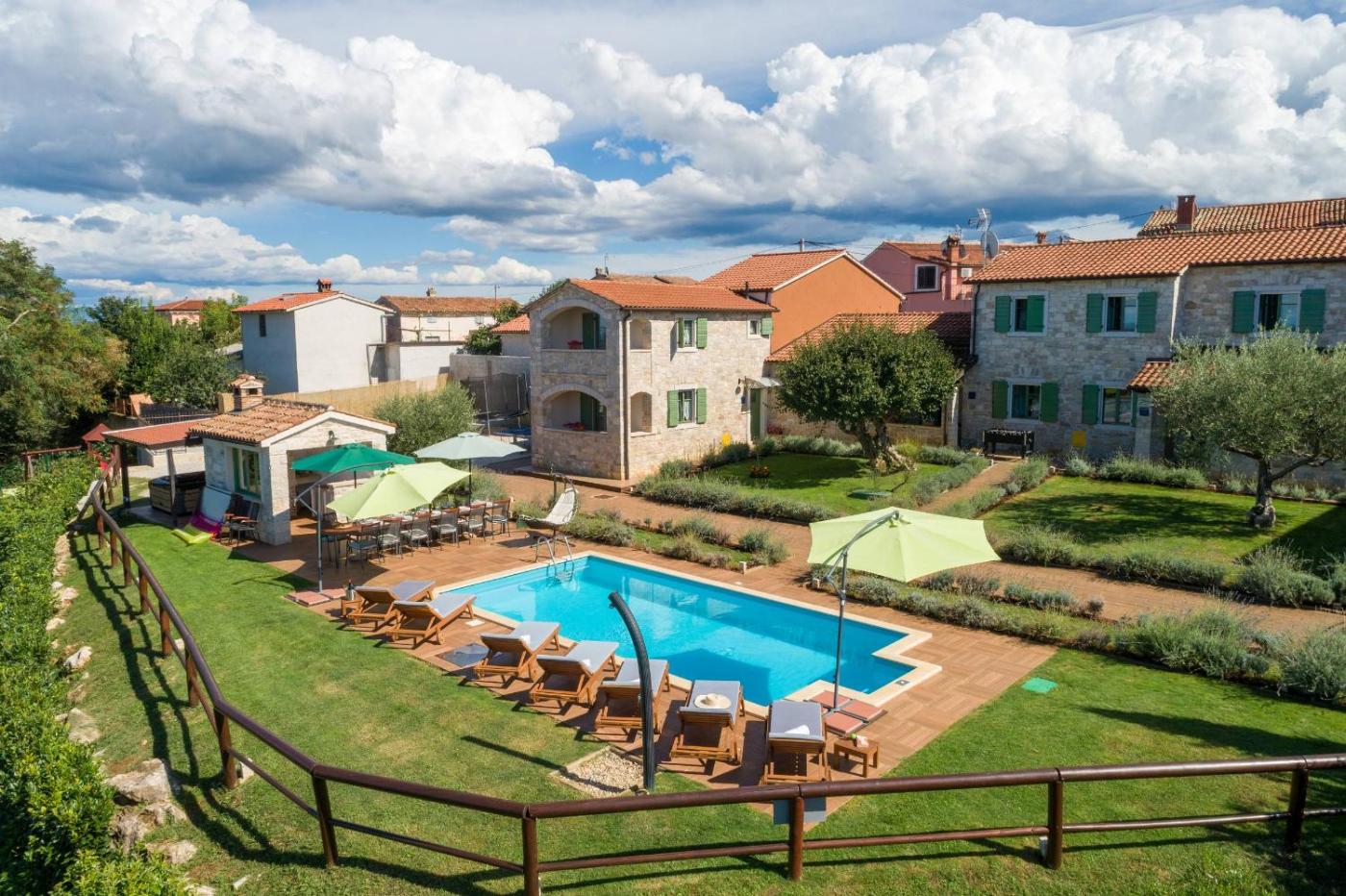 Boasting air-conditioned accommodation with a balcony, Villa Baldasi is situated in Vižinada. This property offers access to a terrace, free private parking and free WiFi. The villa has an outdoor fireplace and a hot tub.
