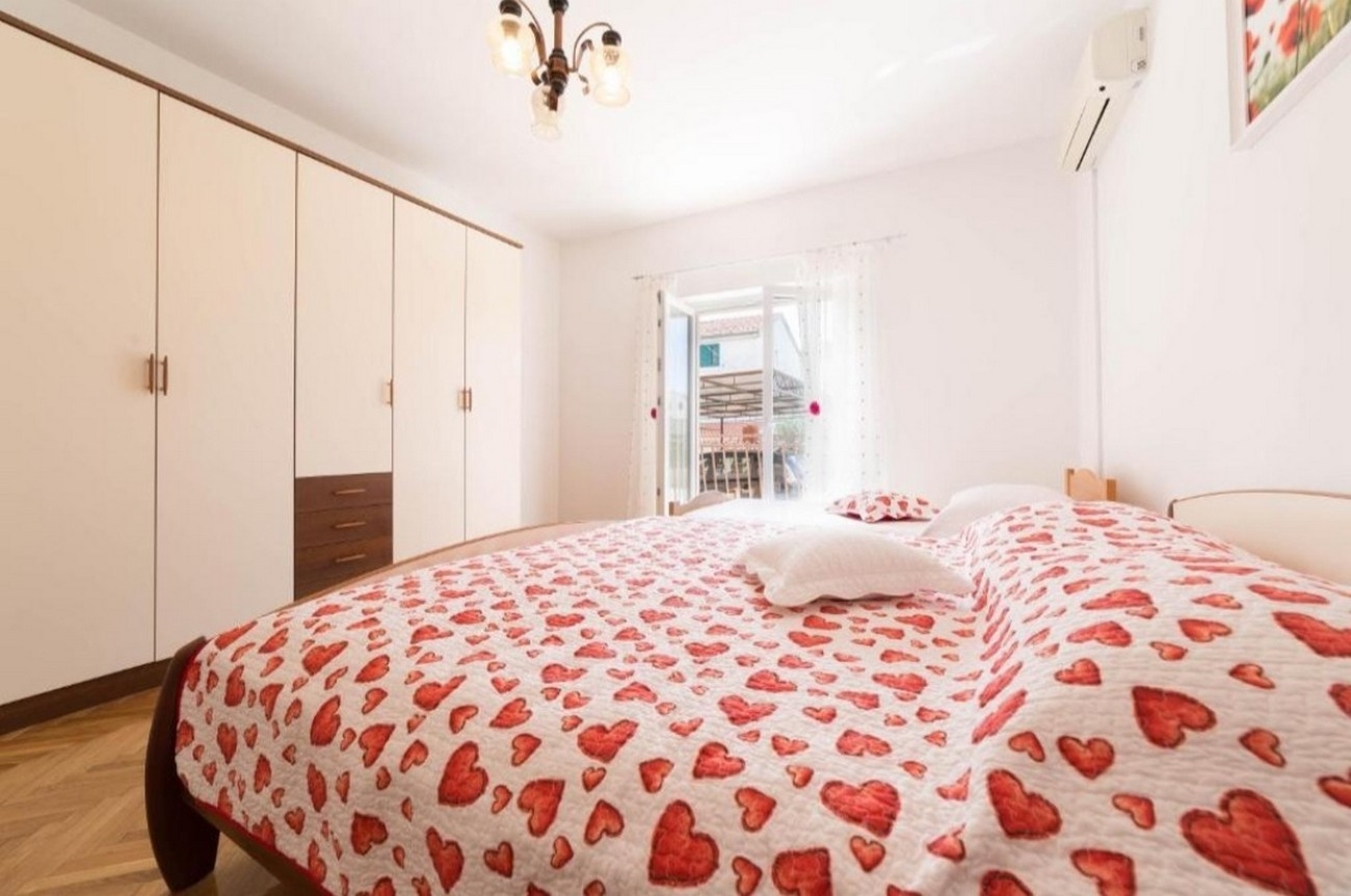 Apartment can accommodate 6 guests. Beds are situated in 2 sleeping rooms, within 45m2. Guests can use a private terrace to enjoy the warm summer evenings. Food can be prepared using barbecue which is shared with other guests too. This accommodation unit welcomes pets at no additional costs. INCLUDED IN THE PRICE: tourist tax, final cleaning, air-conditioning, parking, internet, pets, iron, hairdryer. The availability of additional services for your chosen dates of stay, as well as their prices (if none are listed) must be checked ahead of time. Any additional services not shown in the price calculation are payable directly to the property owner and only if used by the visitor.