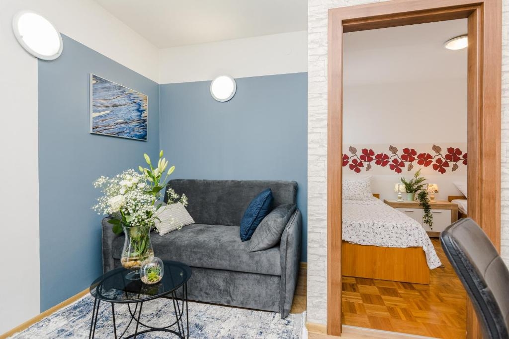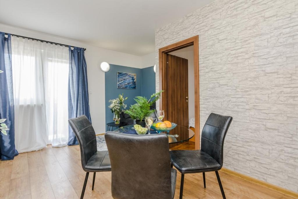 Apartment can accommodate 4 guests. Beds are situated in 2 sleeping rooms, within 48m2. Guests can use a private terrace to enjoy the warm summer evenings. The apartment offers the sea view. Food can be prepared using barbecue which is shared with other guests too. Shared pool is on disposal during stay. INCLUDED IN THE PRICE: final cleaning, air-conditioning, pool, parking, internet, baby cot, iron, ironing board, hairdryer. OBLIGATORY ADDITIONAL COSTS: tourist tax (adults €0.93 - €1.50 nightperson, discount for children aged 12 - 17), short stay fee (surcharge depending on a number of booked nights: 30% - 1, 20% - 2, 10% - 3). The availability of additional services for your chosen dates of stay, as well as their prices (if none are listed) must be checked ahead of time. Any additional services not shown in the price calculation are payable directly to the property owner and only if used by the visitor.