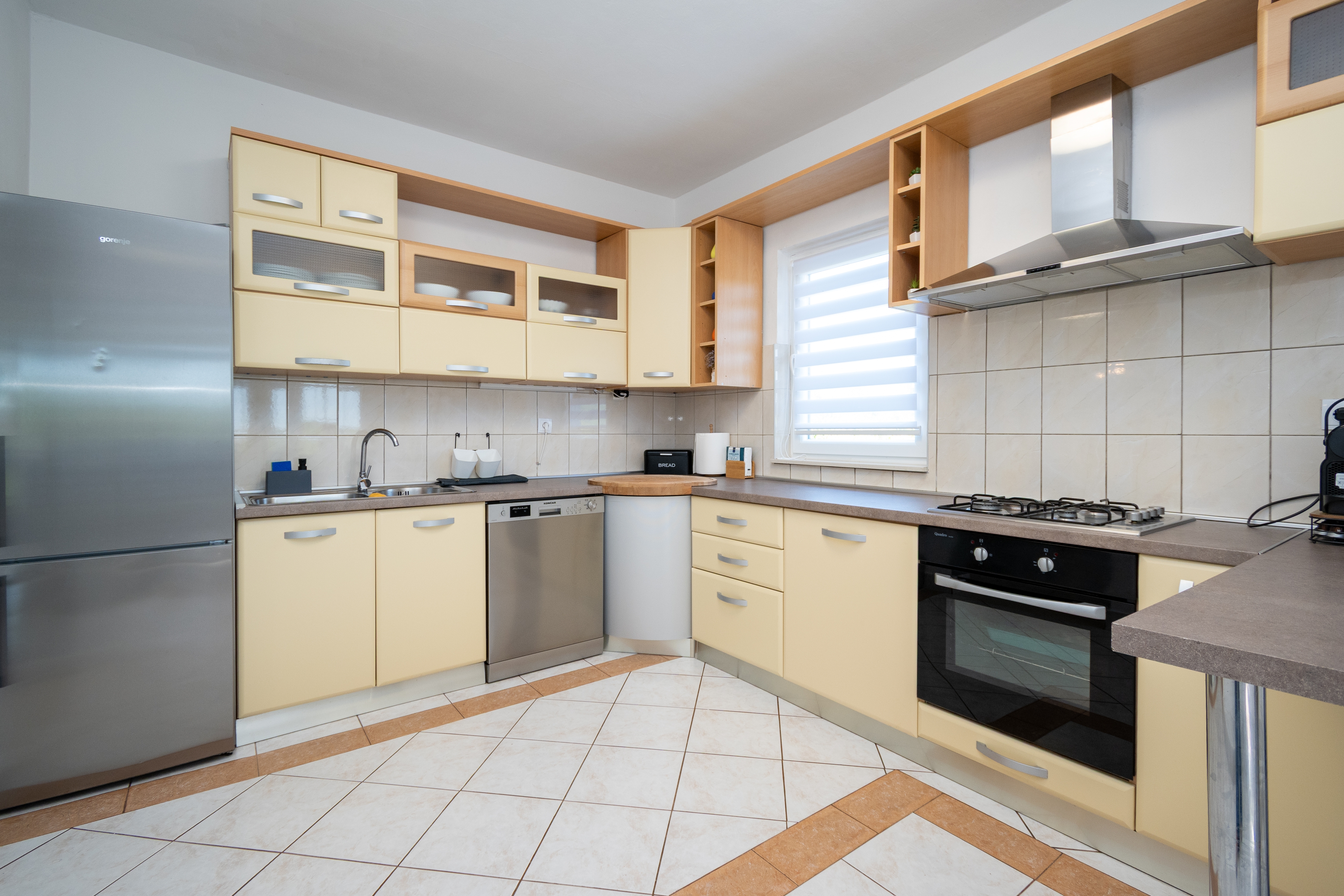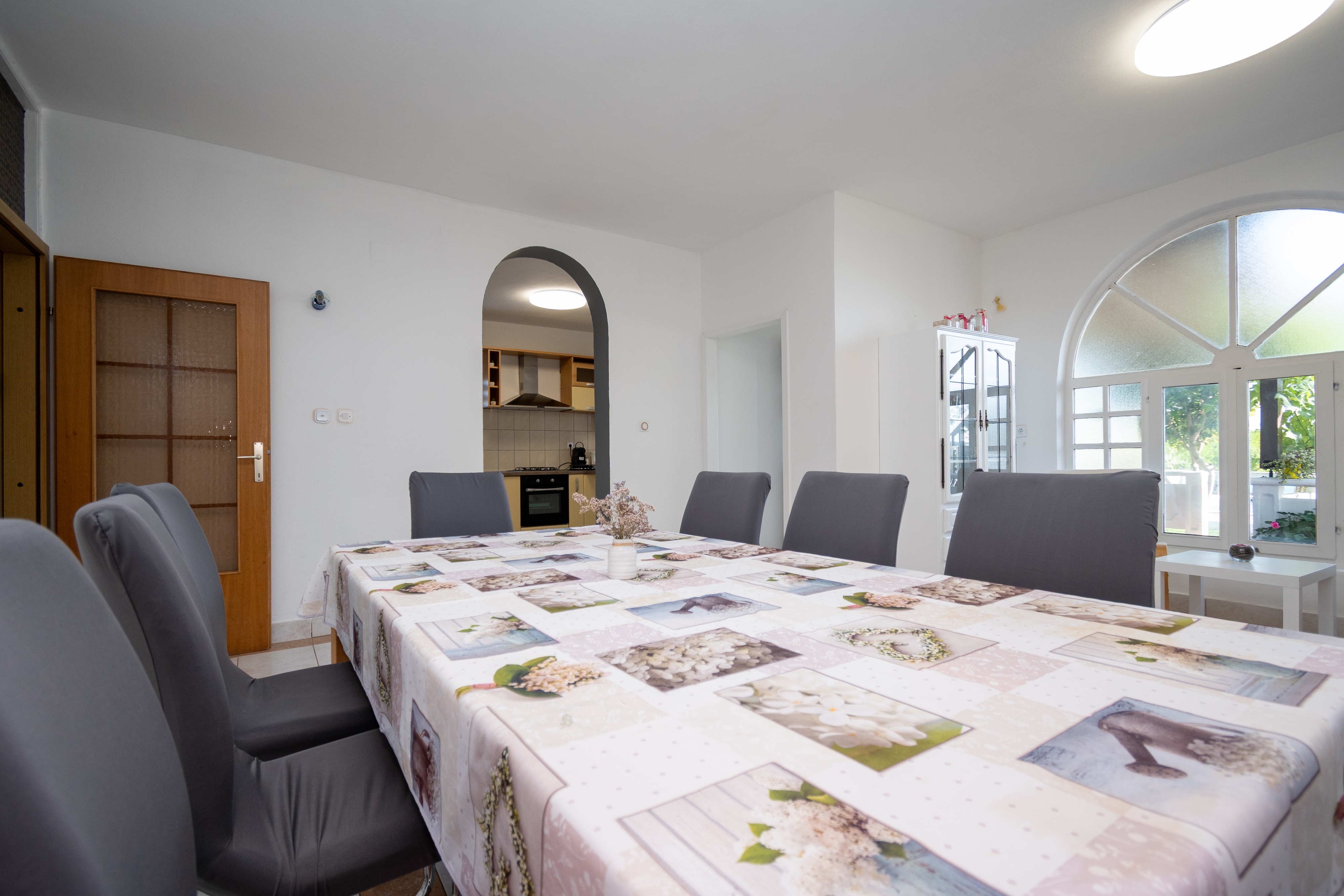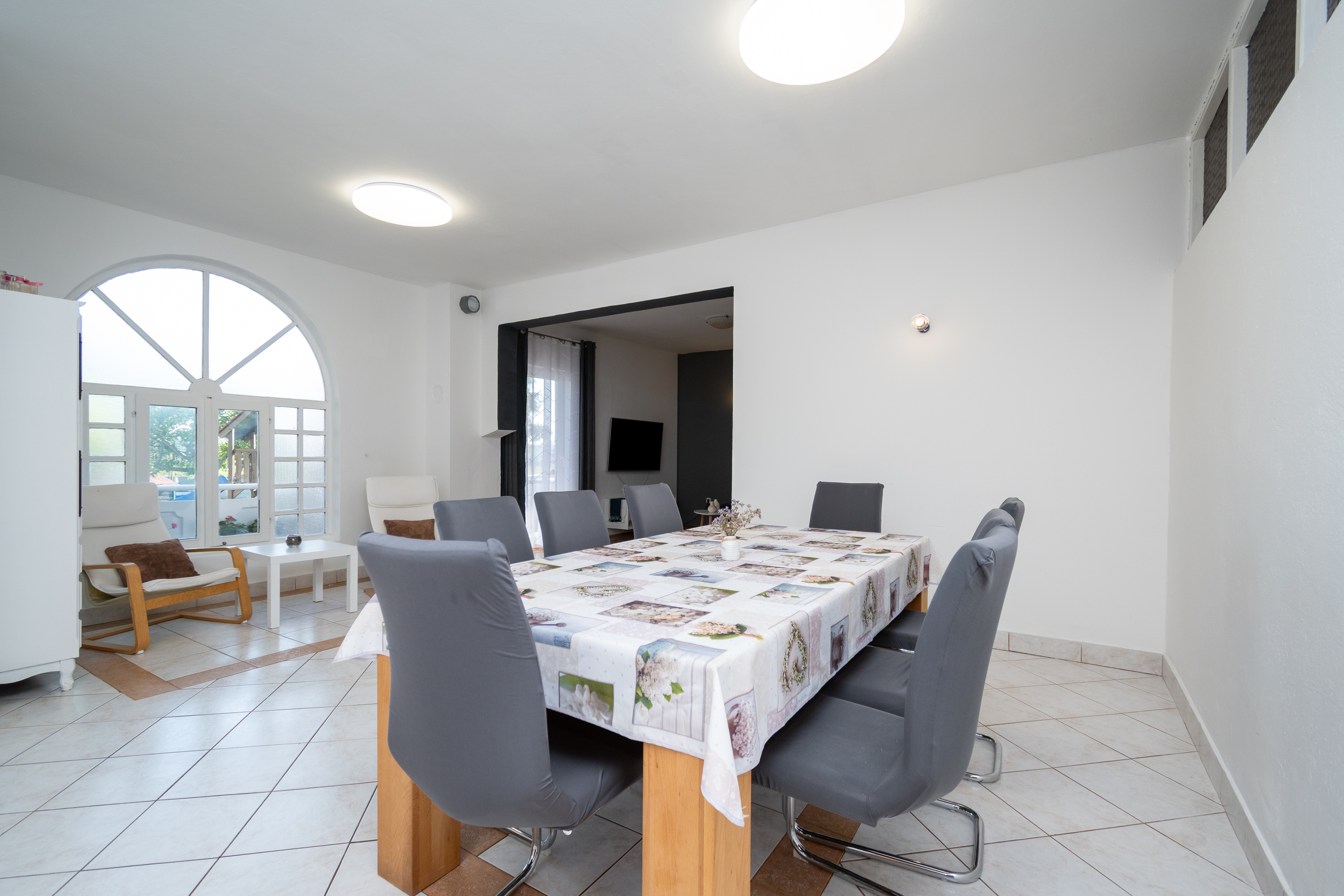 Apartment can accommodate 8 guests. Beds are situated in 3 sleeping rooms, within 111m2. Guests can use a private terrace to enjoy the warm summer evenings. For full enjoyment and relaxation there is a private barbecue for this accommodation guests only. During stay, there is a private pool for relaxation and pleasure. This accommodation unit welcomes pets at no additional costs. INCLUDED IN THE PRICE: tourist tax, final cleaning, air-conditioning, pool, parking, internet, pets, iron, ironing board, hairdryer, 2 beds for children (included in the price). OPTIONAL ADDITIONAL COSTS: boat mooring (€5.00 per night). The availability of additional services for your chosen dates of stay, as well as their prices (if none are listed) must be checked ahead of time. Any additional services not shown in the price calculation are payable directly to the property owner and only if used by the visitor. Discounts to the base price: free day 28=25 (for stays of 28 days or more, we give you 3 days free of charge for the stay until 31122026).
