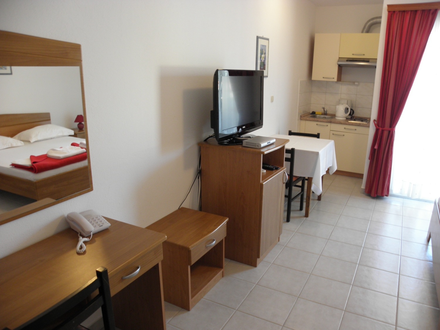 Studio flat can accommodate 3 guests. Beds are situated in 1 sleeping rooms, within 26m2. Guests can use a private terrace to enjoy the warm summer evenings. The studio offers the sea view. This accommodation unit welcomes pets at an additional charge. INCLUDED IN THE PRICE: final cleaning, air-conditioning, parking, internet, laundry, baby cot, iron, ironing board, hairdryer. OBLIGATORY ADDITIONAL COSTS: tourist tax (adults €0.93 - €1.50 nightperson, discount for children aged 12 - 17), short stay fee (surcharge depending on a number of booked nights: 30% - 1, 20% - 2, 10% - 3). OPTIONAL ADDITIONAL COSTS: breakfast (€13.00, a 50% discount for children aged 4 to 12 years, Children up to age 4 free of charge), half-board (€40.00, a 50% discount for children aged 4 to 12 years, Children up to age 4 free of charge), pets (€3.00 per night). The availability of additional services for your chosen dates of stay, as well as their prices (if none are listed) must be checked ahead of time. Any additional services not shown in the price calculation are payable directly to the property owner and only if used by the visitor.