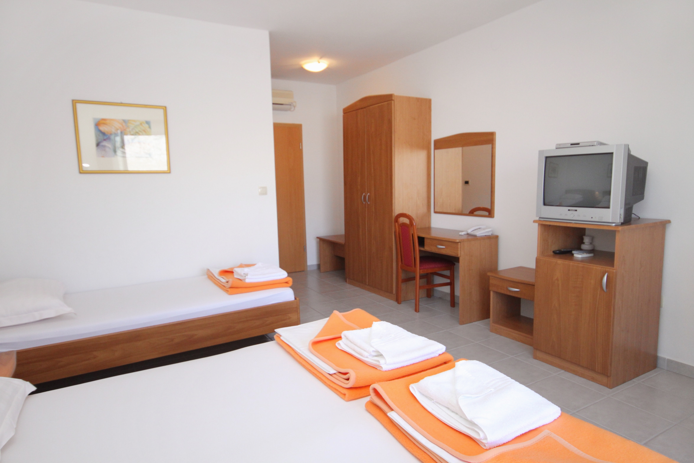 House 3248 in the town of Vinjerac, Zadar - North Dalmatia has accommodation units of type Studio flat (11), Apartment (4), Room (2) and is 70 m away from the sea. The nearest beach to this accommodation is a pebble beach. The house is categorized as "Pensions". The house is dividedseveral apartments,other guests will be staying during your holiday. The hosts will not be staying in the house during your holiday. The house owner is under no obligation to accept additional persons and pets that were not stated in the reservation request and it is necessary to report them in advance.AMENITIES Courtyard (500m2, Area suitable for children), Parking lot (Number of parking spaces: 18, Distance from the house: In the courtyard), Breakfast, Half board, WiFi Internet, Laundry service, Hairdryer, Iron, Ironing board, Baby cot LOCATION AND ACCESS Car access possible: Yes The facility is situated in relatively quiet surroundings The property isnt surrounded by greenery DISTANCES Sea: 70 m Beach: 70 m Center: 30 km Shop: 350 m Urgent medical care: 30 km Pharmacy: 16 km Exchange office: 250 m ATMBank machine: 11 km Tourist info: 450 m