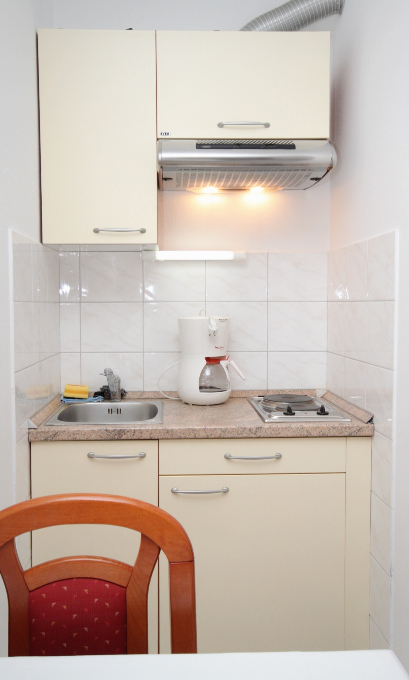 Studio flat can accommodate 3 guests. Beds are situated in 1 sleeping rooms, within 26m2. Guests can use a private terrace to enjoy the warm summer evenings. The studio offers the sea view. This accommodation unit welcomes pets at an additional charge. INCLUDED IN THE PRICE: final cleaning, air-conditioning, parking, internet, laundry, baby cot, iron, ironing board, hairdryer. OBLIGATORY ADDITIONAL COSTS: tourist tax (adults €0.93 - €1.50 nightperson, discount for children aged 12 - 17), short stay fee (surcharge depending on a number of booked nights: 30% - 1, 20% - 2, 10% - 3). OPTIONAL ADDITIONAL COSTS: breakfast (€13.00, a 50% discount for children aged 4 to 12 years, Children up to age 4 free of charge), half-board (€40.00, a 50% discount for children aged 4 to 12 years, Children up to age 4 free of charge), pets (€3.00 per night). The availability of additional services for your chosen dates of stay, as well as their prices (if none are listed) must be checked ahead of time. Any additional services not shown in the price calculation are payable directly to the property owner and only if used by the visitor.