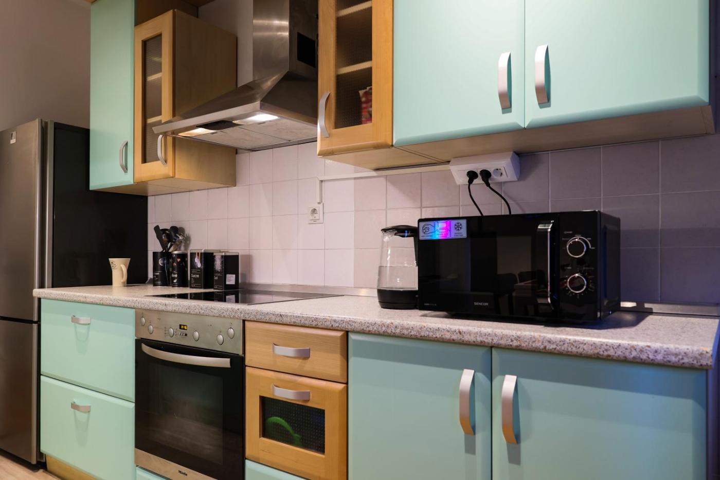 One-Bedroom Apartment. Guests can make meals in the kitchen that features a stovetop, a refrigerator, kitchenware and a microwave. The spacious air-conditioned apartment features a flat-screen TV with streaming services, a washing machine, a seating area and a dining area. The unit has 3 beds.